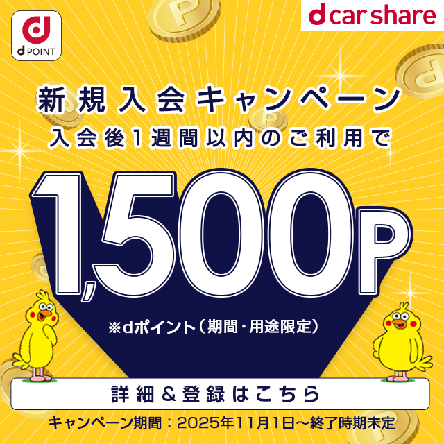 | 特典進呈方法 | dカーシェアに会員登録をされたdアカウントにポイントを進呈 |