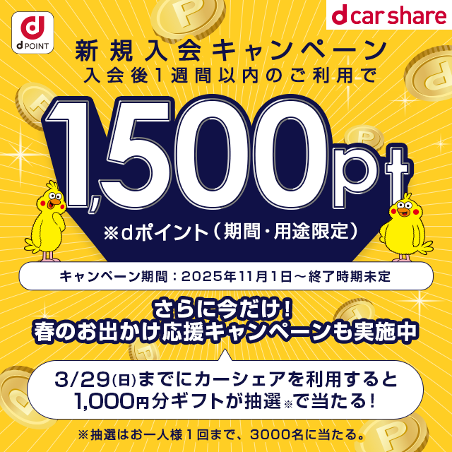 | 特典進呈方法 | dカーシェアに会員登録をされたdアカウントにポイントを進呈 |